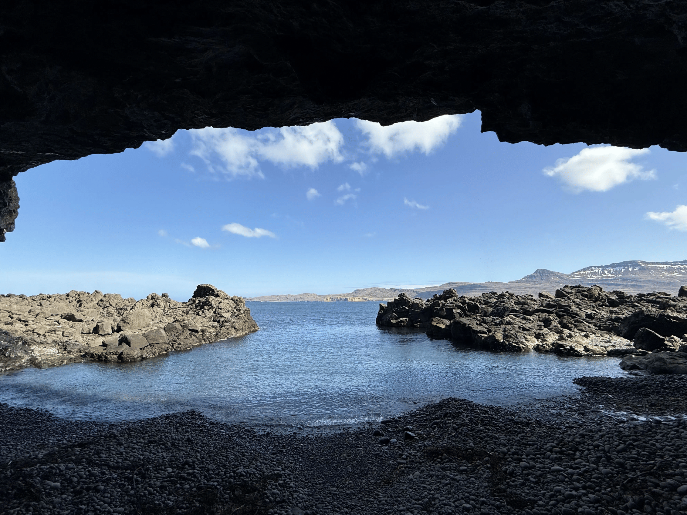 With insightful narration from a local guide, we cruise through the fjord, each stop revealing deeper layers of Iceland's history - both natural and human. Our first destination is Páskahellir, a sea cave carved by waves and time. Step inside (conditions allowing) and witness lava formations and ancient tree molds, while hearing legends woven into the rock itself.