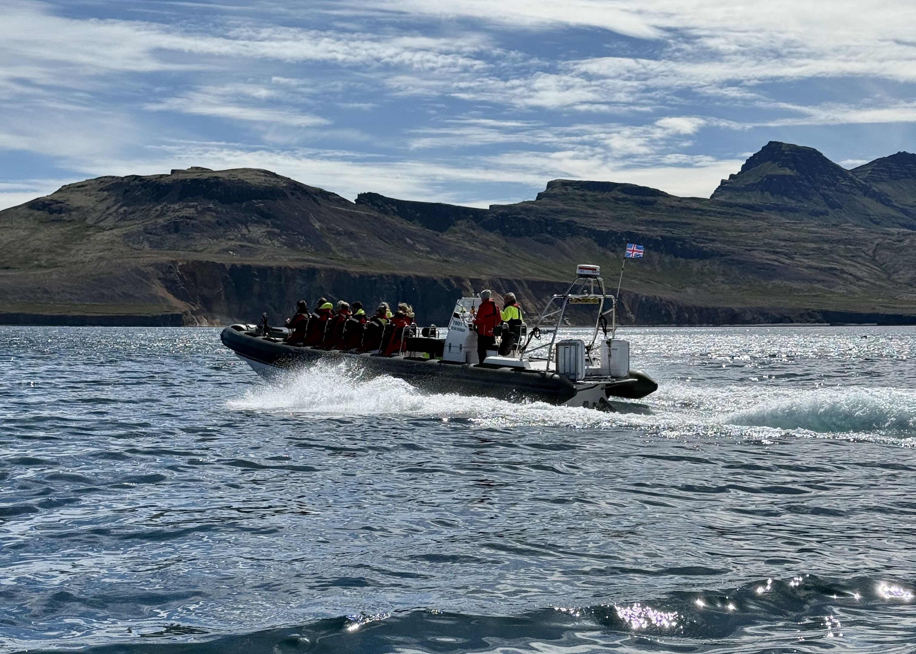 Join us on an unforgettable journey where dramatic landscapes, living stories, and the power of the ocean come together in one thrilling experience. Departing from the pier in the heart of Neskaupstaður, your guide welcomes you aboard a fast and stable RIB boat. From the first moment, you are embraced by the scent of salt in the air, the rush of the sea breeze, and views that take your breath away.